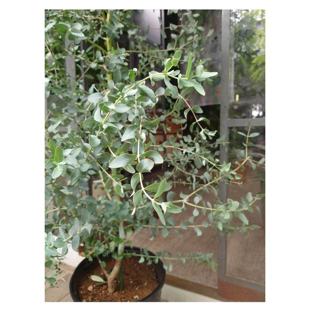 世界に600種類ほどが存在する常緑樹ユーカリ。葉にはシネオールという精油成分を多く含んでおり、スッとする香りはご存じの通りアロマにも活用されます。こちらのグニ―は樹高9~20m程度、シルバーリーフの美しい品種です。幼葉時は丸みを帯びた形の葉ですが、成葉になると細長い形に変わっていきます。