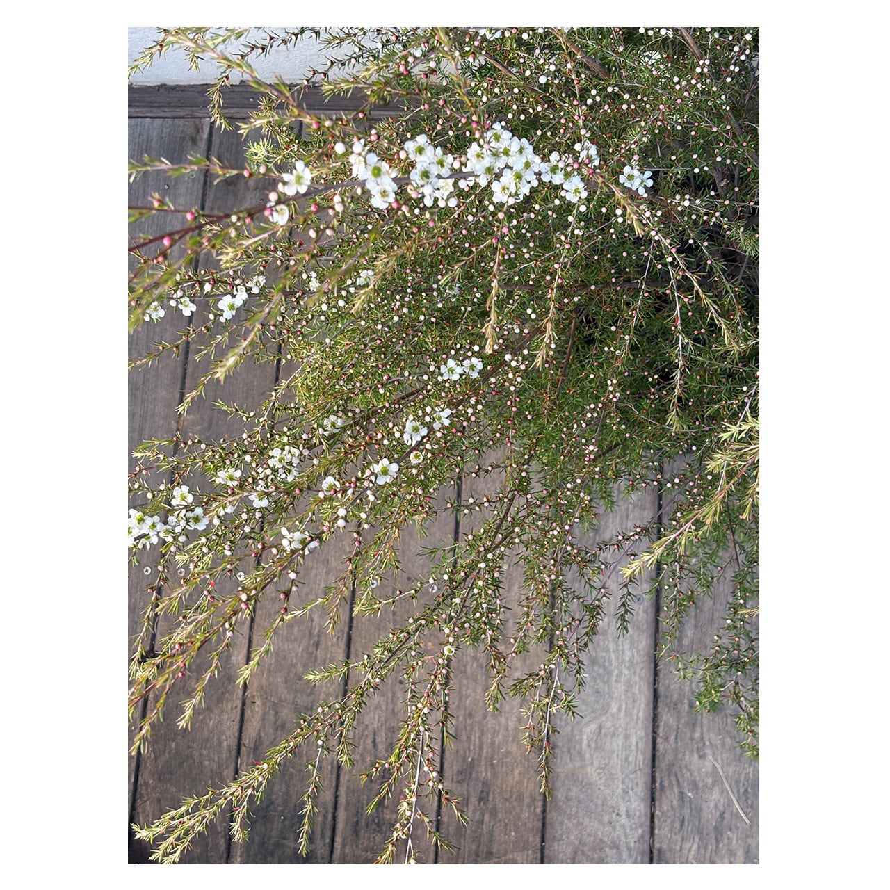 花が咲き枝垂れる姿が美しく、繊細で優しい雰囲気。オージープランツがお好きな方、レプトスペルマムに興味のある方にもおすすめです。