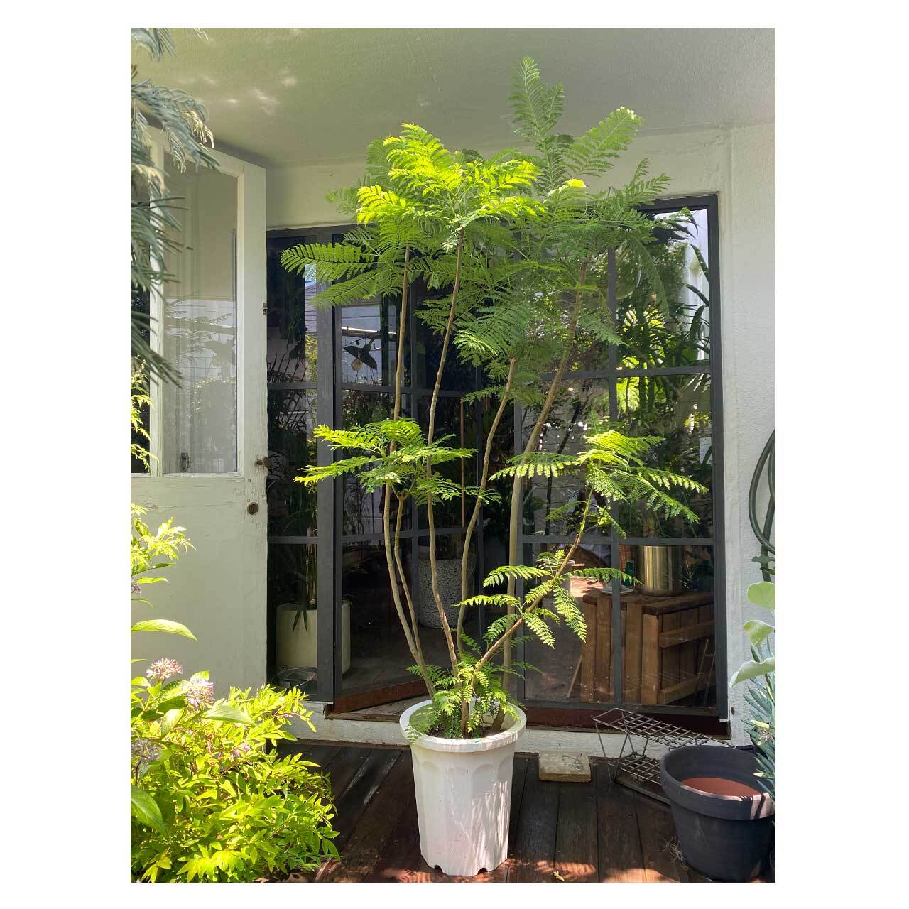 屋内向けの観葉植物としての流通が多かったのですが、温暖化や日本での品種改良などにより、庭木用としての流通も増えています。こちらのミモシフォリアは最も流通している品種で、生長が非常に早く大きくなるので、地植えする場合は場所を選んだ方が良いでしょう。
