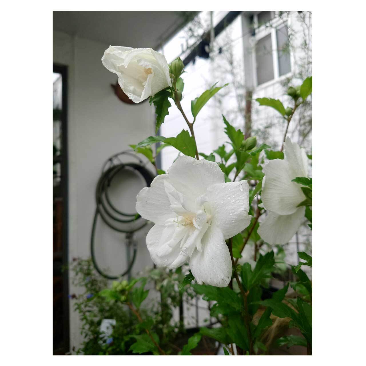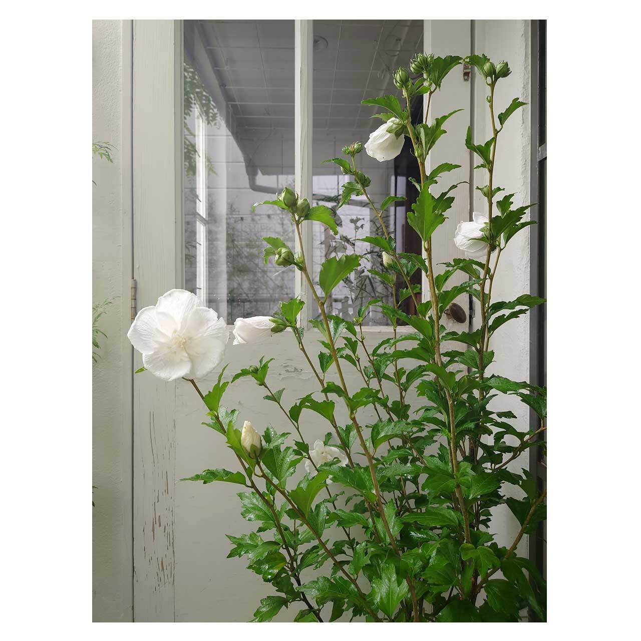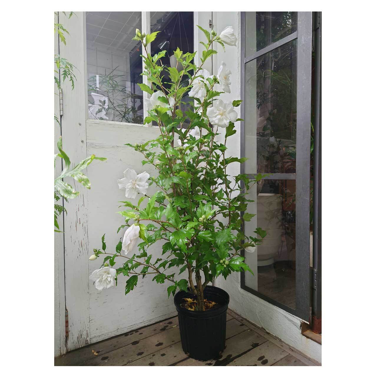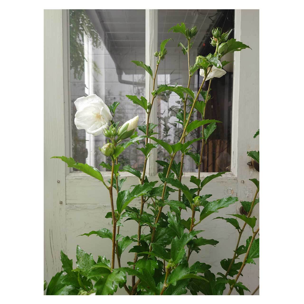 鮮やかな白い花が目を惹く、ムクゲ ホワイトシフォン。