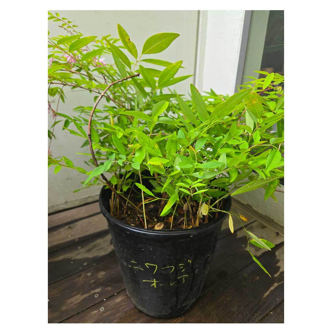 ニワフジ(庭藤)は日本や中国、台湾に自生しているマメ科コマツナギ属の落葉小低木です。呼び名に 'フジ' とありますが藤の仲間ではなく、蔓性でもありません。別名イワフジ(岩藤)とも呼ばれ、花は穂状花序で、初夏に枝の先に複数咲かせます。なお、今回入荷分は 'オーレア' という品種名がついており、入荷時点で写真のような花が見られています。