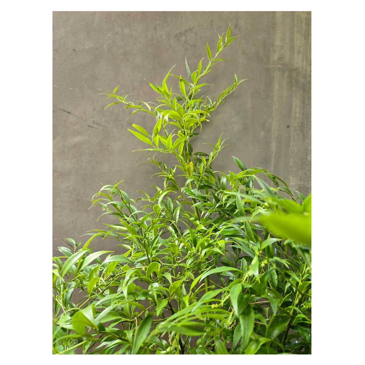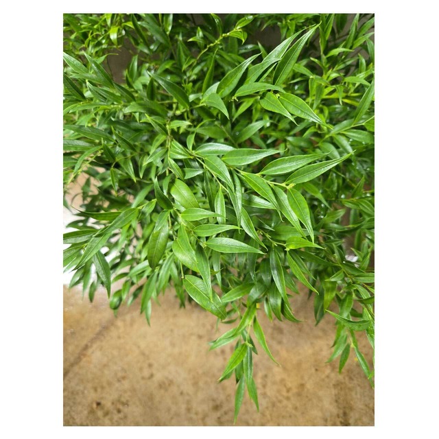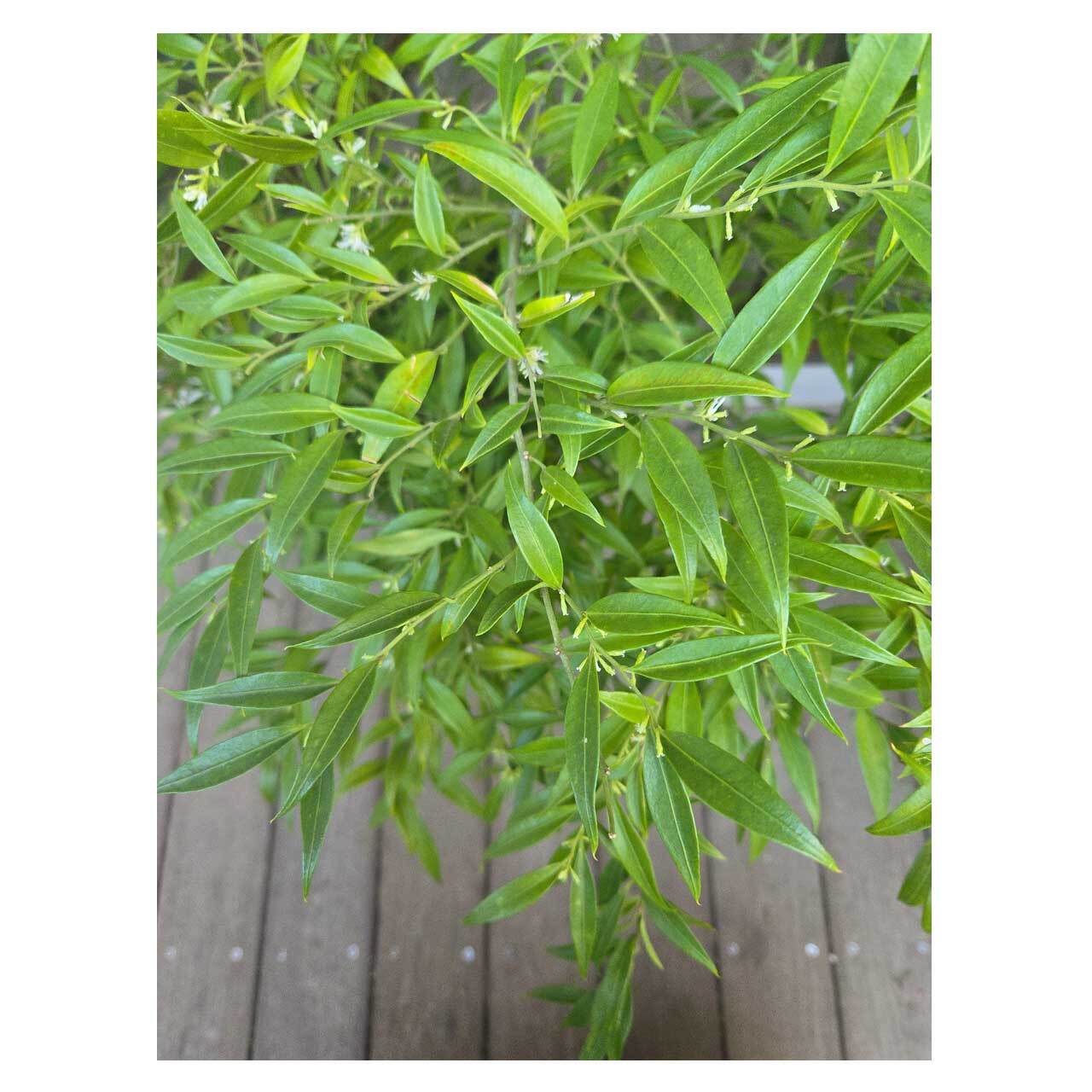 光沢のある濃い緑の葉がわさわさと茂る、細葉のサルココッカ フミリス。